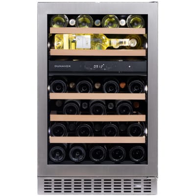Vitrina de vin Dunavox DAUF-45.125DSS.TO, Gama Flow, Culoare Stainless steel, Nr.zone temperatura 2, Inaltime 88 cm, Nr. Sticle 45, Maner Push to Open, WiFi Nu
