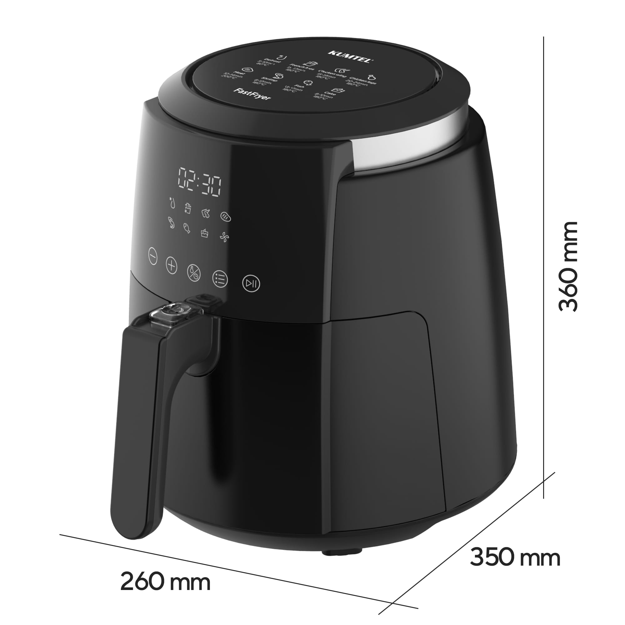 Friteuza rapidă cu aer cald Kumtel Digital FastFryer este soluția ideală pentru a găti rapid mâncăruri sănătoase, cu foarte puțin ulei sau chiar deloc.