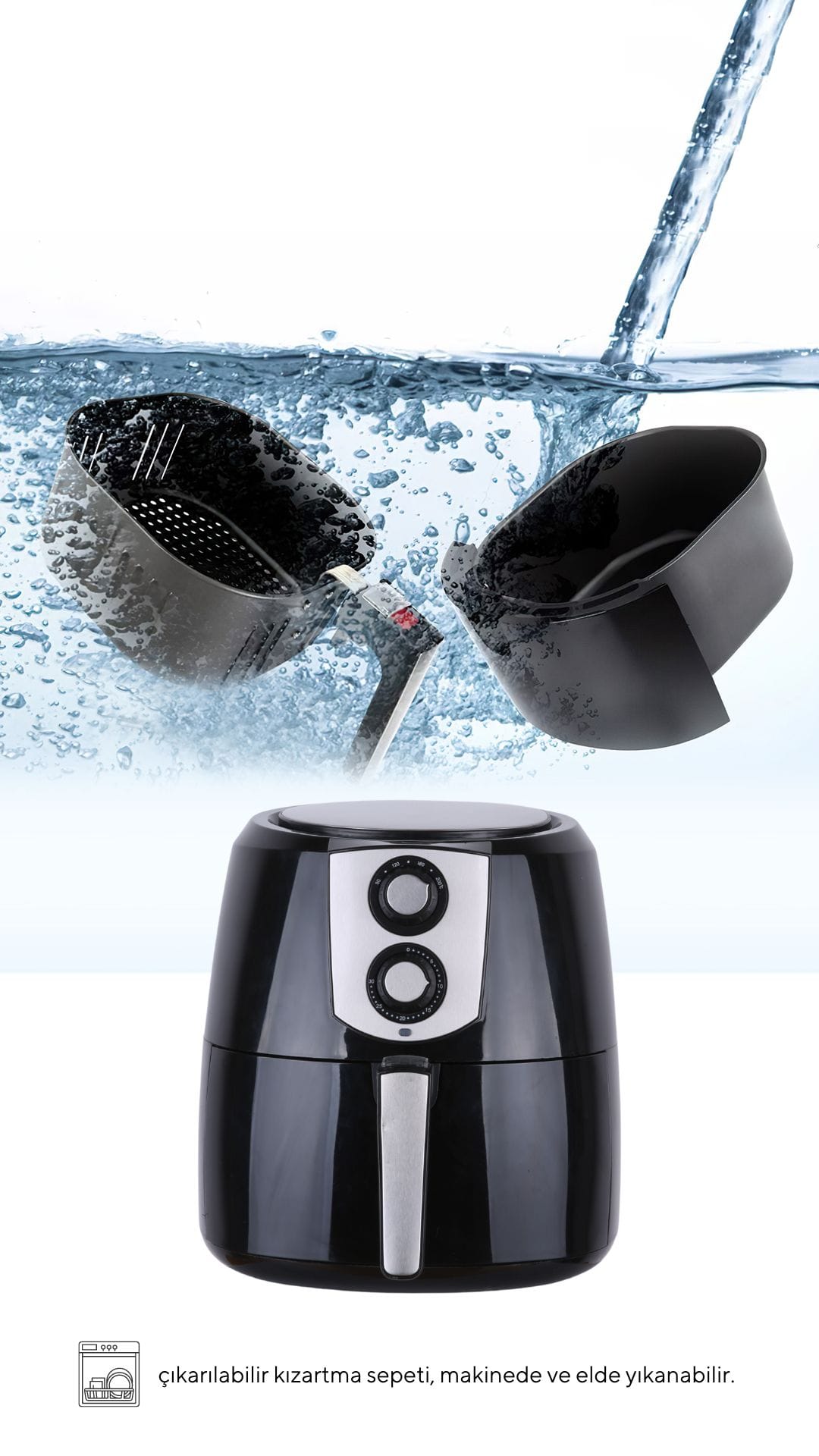 Ø   Este foarte ușor de utilizat și de curățat. Coșul și tava fiind detașabile se pot spăla în mașina de spălat vase.