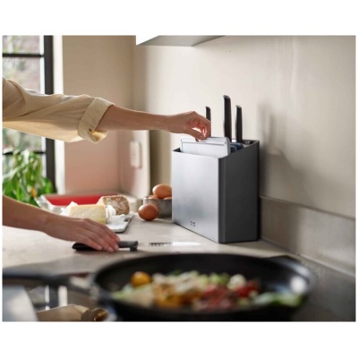 Mânere Elevate™ cu vârfuri din silicon rezistente la căldură și suport integrat pentru unelte. Ideal pentru gătitul cu vase antiaderente. Organizare și igienă îmbunătățite.